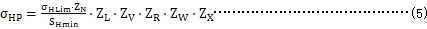 式中:σHlim——試驗齒輪的接觸疲勞極限,N/mm2,見3.13.1款;