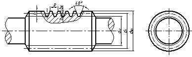 蝸杆一般選用一個視圖,其齒頂線、齒根線和分度線的畫法與圓柱齒輪相同 ,如下圖所示。圖中以細實(shí)線表示的齒(chǐ)根線也可省略。齒(chǐ)形可用局部剖視或局部放大圖表示。