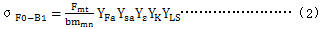 應用B2法時,用複合幾何系數YP­代替計算齒根應力基本值的式(2)中的系數YFa、Ysa、Yε、YLS和YK,所以