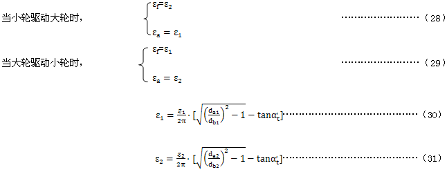 重合度系數Kε是考慮在忽略載荷分配時,将小輪齒頂的閃溫值轉換爲沿齧合線閃溫平均值的系數。重合度系數可以用齒高重合度ε1與ε2以及它們的和εa來表示。Xε的公式是基於假定沿齧合線的閃溫是線性分布的 。這種方法的可能誤差将不會超過5%,且偏於安全。