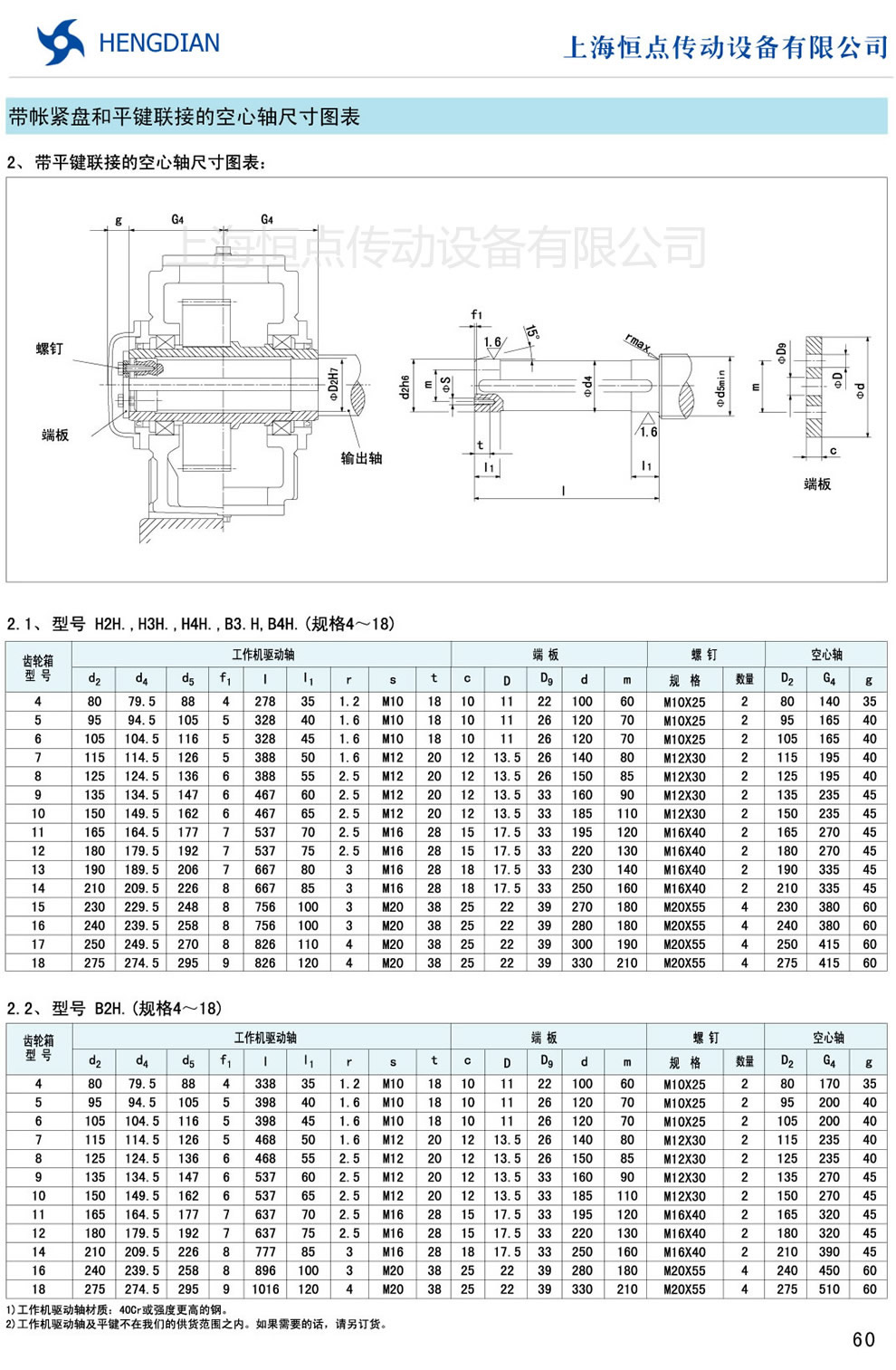 帶平鍵聯接的空心軸尺寸 - HB标準工業齒輪箱
