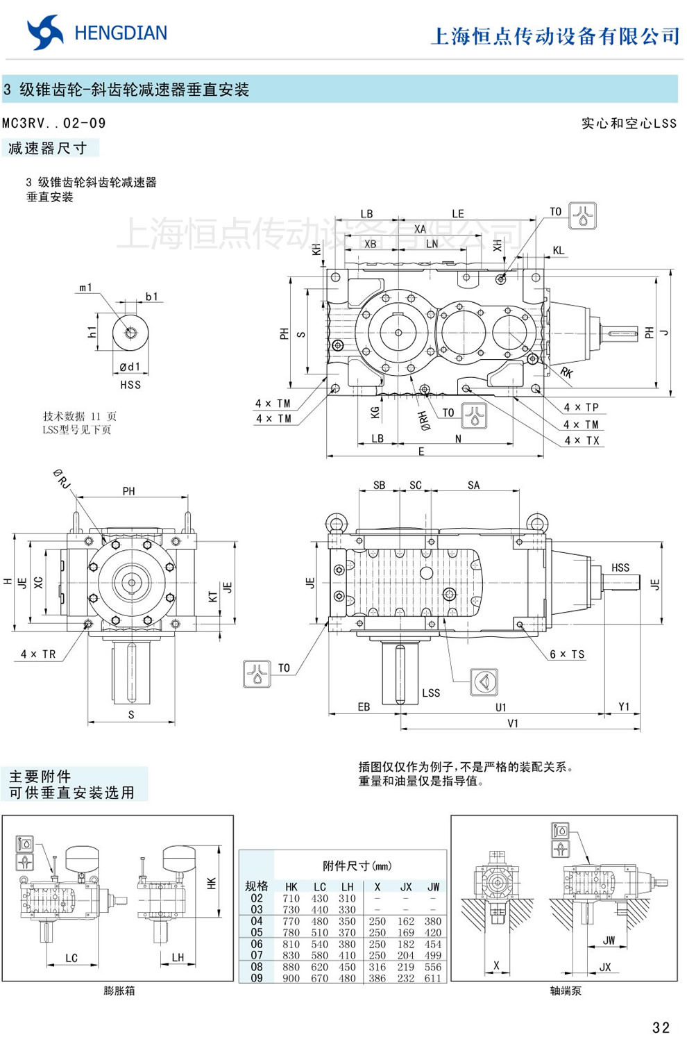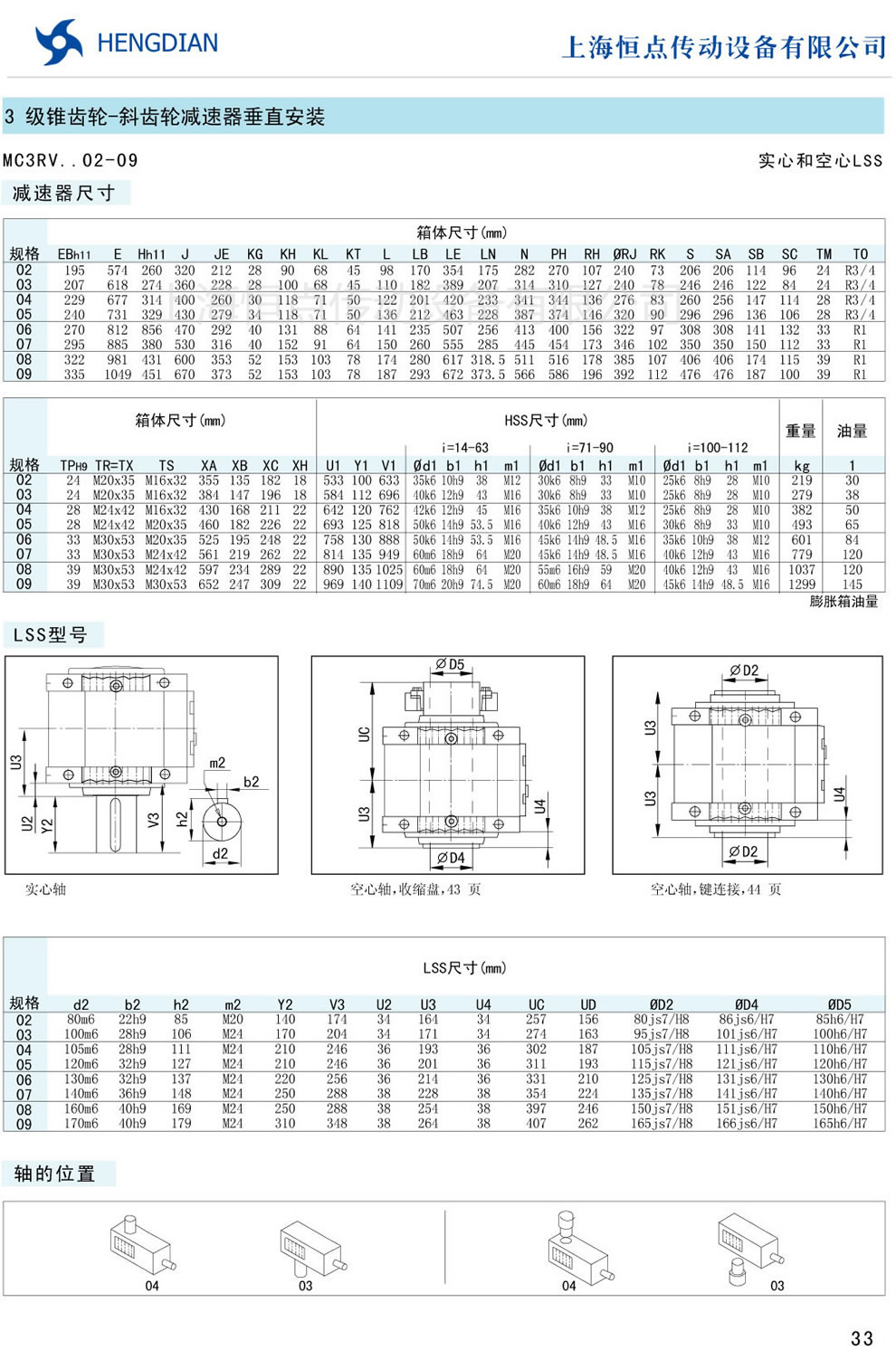 MC硬齒面減速器 詳細選型參數及尺寸參數: